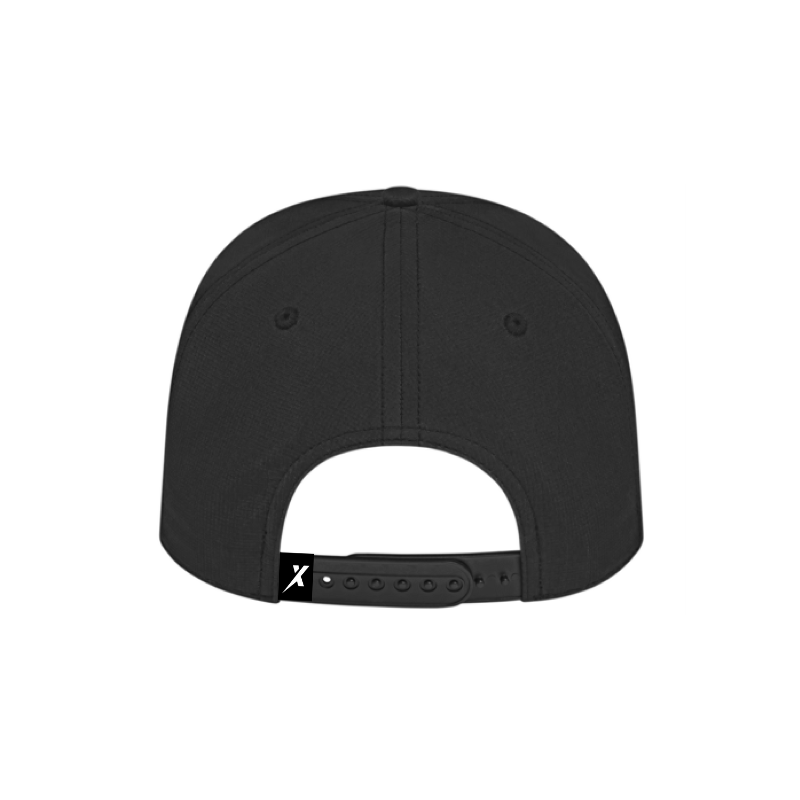 The EnergyX Rope Hat is a sleek black hat featuring a white embroidered “EnergyX” logo on the front and a white rope detail at the base of the crown. It has an adjustable snapback closure for a perfect fit.